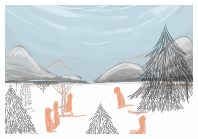 大体の色のイメージとか地平線の位置はここで決定しておきました。