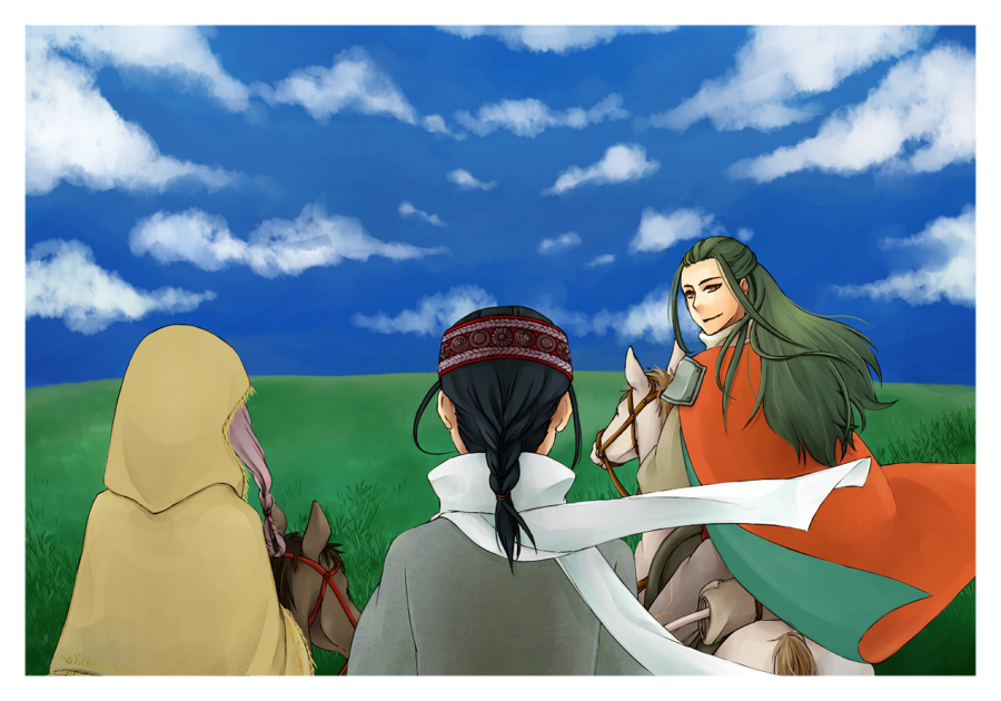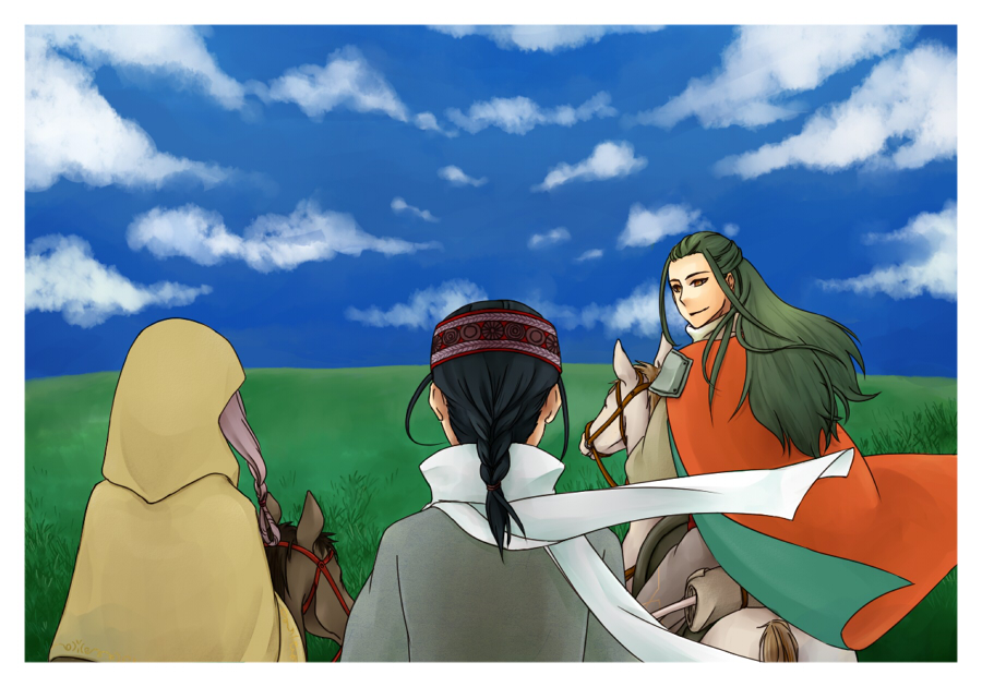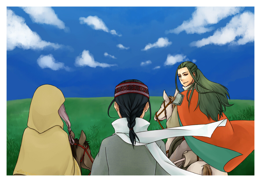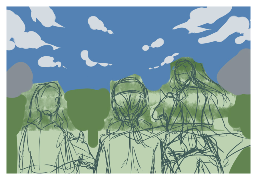 雲とか人物の影を足してます。