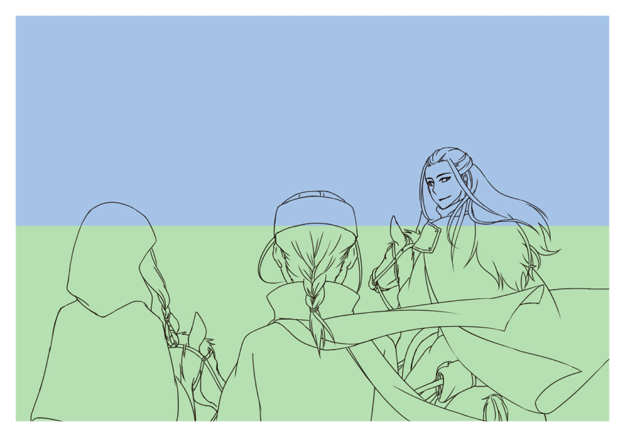 色のイメージと地平線と描きたいものをずらーっと。